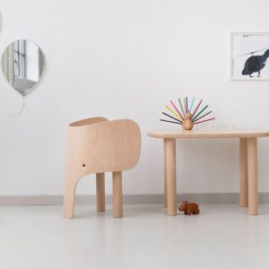 The Elephant Chair & Table have a welcoming appearance and serve as a perfect blend of form and function. The chair & table are made from fine European beech wood in a matte lacquer finish. 1 Table Ages 3+ Fine European beech wood in a matte lacquer finish Wipe Down Please note: this item does…
