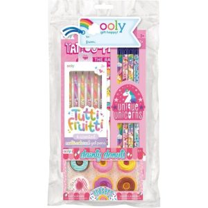Fill your pages with everything fun and fruity and cool and creative with the Very Beary Sweet Happy Pack! You’ll get a grand collection of fruity scented stickers to match with the Tutti Frutti Scented Gel Pens as well as the Unique Unicorns  Graphite Pencils, Dainty Donuts Scented Erasers  and now Over the Rainbow Ta