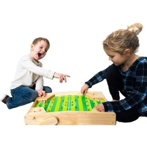 Pinball in space or soccer for two? High speed, hands on traditional table top games controlled with flippers improve hand eye co-ordination, fine motor skills, concentration and sportsmanship! Ages 3+ Materials: Wood, Steel Care instructions: Wipe with damp cloth, air dry; do not immerse in water PLEASE NOTE: This ite