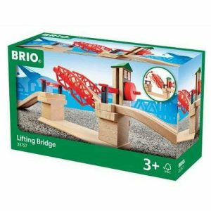 There’s a boat waiting to pass by. Turn the crank to raise the railway draw bridge and manually lower the stop barriers to make sure that no train tries to pass through. The Lifting Bridge also includes 2 ascending wooden tracks for easy connection to the BRIO World railway.