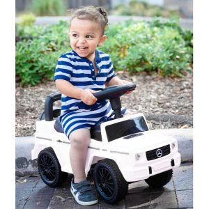 Officially licensed Mercedes G-Wagon Push car comes with under the seat storage, steering wheel with music and horn sounds & strudy back rest. Best for ages 1-3 years This item does not qualify for free shipping. Additional shipping costs will apply due to the size/weight of the item.