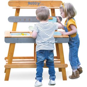A bit of soil, a few blades of grass, some water, mix it all together, and you have the perfect mud workshop! Let your child thrive in nature and develop their imagination with this solid wood kitchen. Suitable for outdoor use, this toy will withstand all experiments by young and old alike. Delivered with 10…