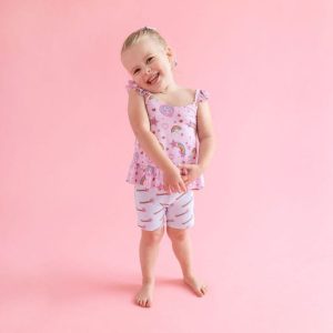 Ruffles all around! Perfect for summertime, this darling ruffled tank is designed with ruffled straps that are adjustable to grow with your peanut and a ruffled hem that falls at the waist. It's super-stretchy, buttery-soft, and breathable thanks to our signature Päpook® viscose from bamboo. She'll want to wear it all