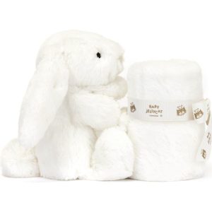 Bashful Luxe Bunny Luna Soother offers the perfect comfort in luxuriously soft white fur. Little ones can cuddle up with the blanket or the tiny Bashful Luxe Bunny Luna holding on to the corner for the most joyful of dreams. This soother is tied with a grosgrain printed ribbon and presented in an elegant Jellycat…