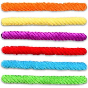 Represent your favorite candy with this officially licensed Rainbow Twizzlers Mini Pillow Set. This set includes a Rainbow Twizzlers pillow with 5 rainbow plush included! Includes 6 removable pieces Fleece material Embossed detail TWIZZLERS trademark and trade dress are used under license Dimensions: 19" w x 8 1/2" h x