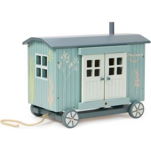 A wonderful addition to our Merrywood Tales collection. This shepherd’s hut is the perfect glamping staycation for our new family of mice. They have borrowed some human-sized trinkets to use as essential furniture in their hut. A teacup makes a perfect shower for a little mouse. Spools of old thread make for chairs to