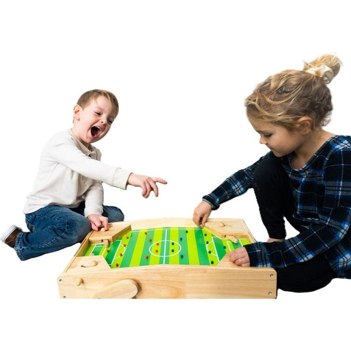 Pinball in space or soccer for two? High speed, hands on traditional table top games controlled with flippers improve hand eye co-ordination, fine motor skills, concentration and sportsmanship! Ages 3+ Materials: Wood, Steel Care instructions: Wipe with damp cloth, air dry; do not immerse in water PLEASE NOTE: This ite