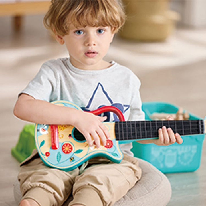 Start your very own band with the bright and vibrant ukulele set. You can invite your friends and family to play your favourite tunes with the realistic ukulele, maraca, tambourine and castanet. PERFECT UKULELE PLAYSET: This playset is made of 4 musical instruments: a maraca, castanet, tambourine and a ukulele. HELPS W