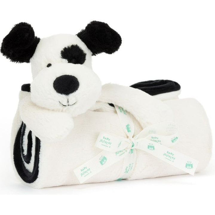 Bashful Black & Cream Puppy Blankie is a gorgeous large blanket with puppy head and arms in iconic black and cream Bashful fur created from recycled fibres. A soft spot for resting or for tummy time. Tested to and passes the European Safety Standard for toys: EN71 parts 1, 2 & 3 for all ages. New and recycled m