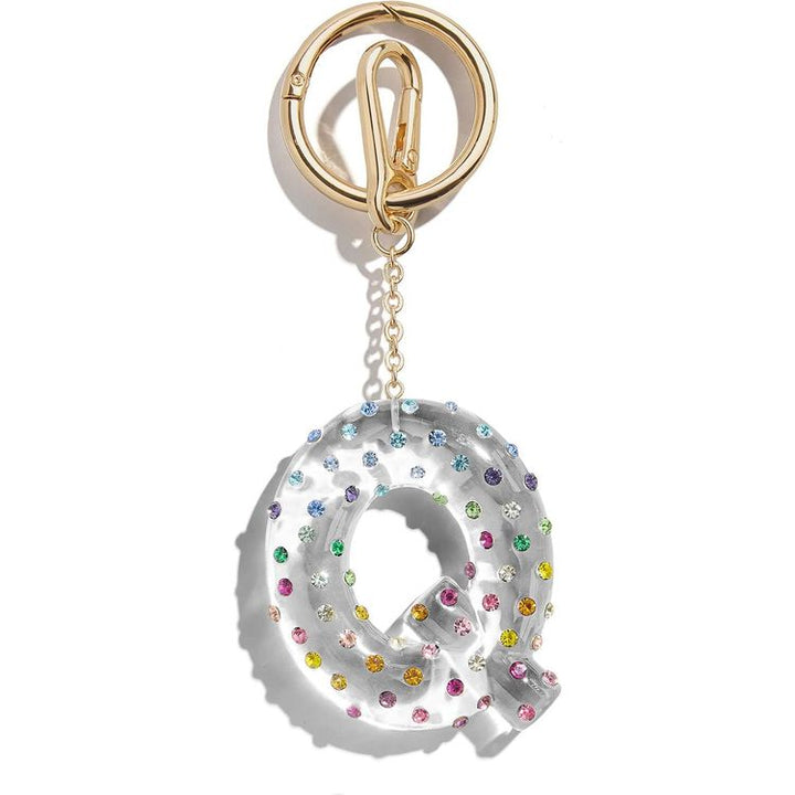 Add some vibrant hues to your bag with the Confetti Initial Bag Charm. Featuring the letter of your choosing in a bold, bubble-letter font, embellished with dainty multicolored stones for added sparkle. Keychain closure Clear initial with rainbow studded gemstones. Dimensions: 5.07" x 2.4"  Ages 3+ Materials: 60% res