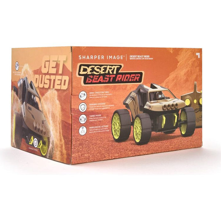 Experience the thrill of the Sharper Image® Desert Beast Rider RC Off-Road Buggy, engineered to dominate any terrain. Equipped with high-traction rubber tires, this buggy effortlessly transitions from street racing to off-road adventures, providing unmatched versatility and control. Designed to withstand the toughest c
