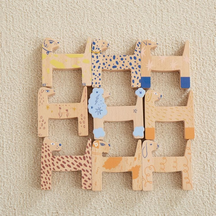 Help your kids get a sense of balance with our Dog Gone Balancing Game. Comes complete with 9 dogs, 5 bones and a rocking base that makes this a fun and challenging game for the kiddos. Water based, non-toxic painted patterns on each dog. Solid beechwood. Get yours today, DOG GONE IT! Ages 18 Months + Material: Bee