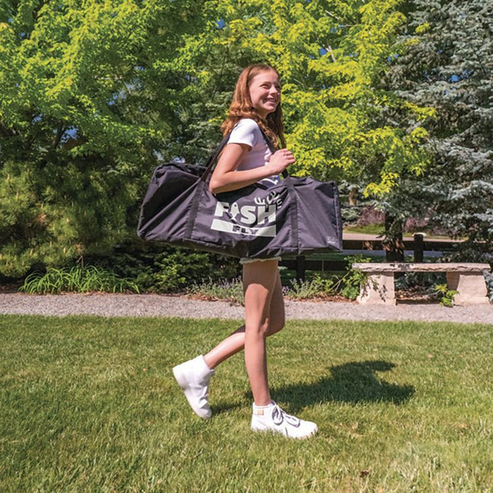 FLY schools of FISH up the ramp, high into the sky, and try to land them in the “nets” to score points! It's fun, fast-paced, and simple to play. You can compete with up to 6 players, either individually or as teams. SIMPLE SCORING: There are 3 target "net" rings provided: the large ring is 5 points, medium is 10, and