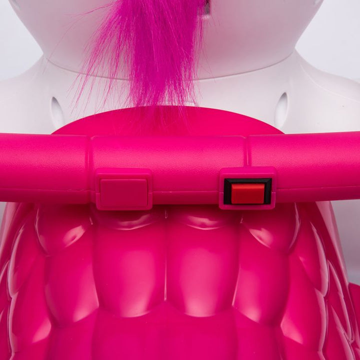 Bring the magic of fairytales to life with the Unicorn Ride-On Toy! This 12V ride-on is perfect for toddlers aged 18+ months. It features enchanting lights and sounds, adding to the fun. The toy includes a comb and brush for grooming the unicorn's mane and tail, and an interactive carrot that triggers eating sounds whe