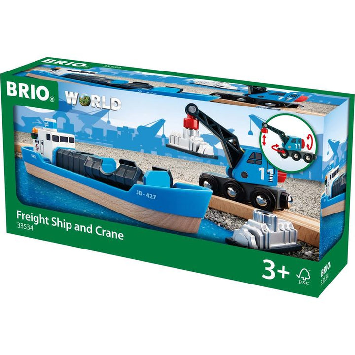 The popular container ship carries cargo across the imagined waters. Load and offload by using the moveable crane to crank up the magnetic loads from the ship and place them on any train wagon from BRIO. This item includes 1x Ship, 1x Crane, 2x Magnetic Loads and measures 23 x 9 x 6.1cm Ages 3+