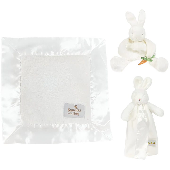 For little ones always on the move, the Go Go Baby Gift Set is packed with snuggles, comfort, and fun! This delightful collection includes: Bun Bun Bye Bye Buddy – 11" length, satin lining, 100% Polyester, Machine wash & dry low heat Glad Dreams Blankie – 14×14 inches, 100% Polyester, Machine wash cold. air dry. Bu