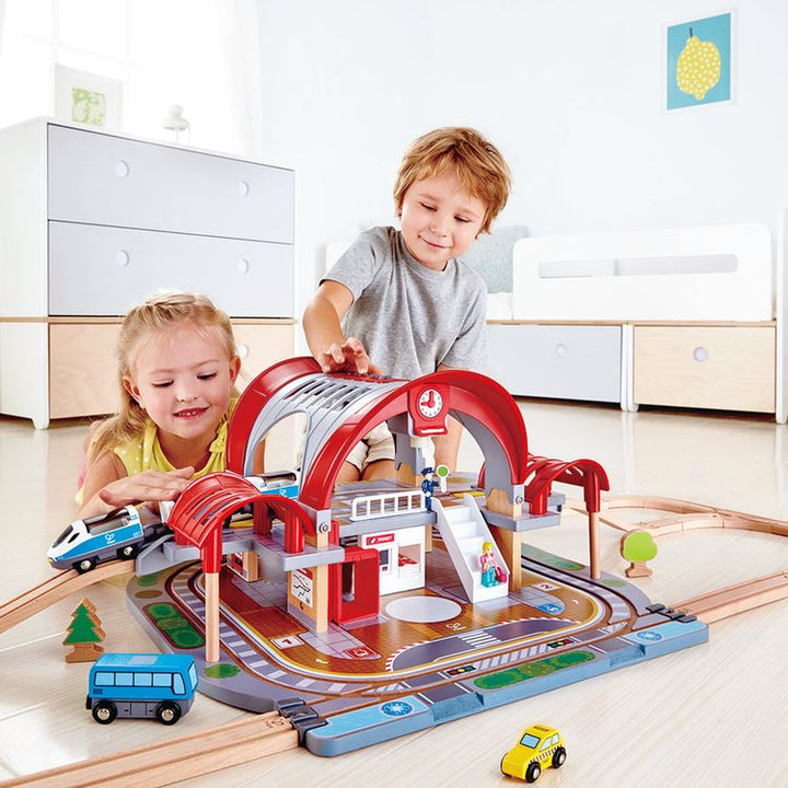 Visit the world’s most exciting destinations with this bustling two-level station! It has a projector that displays images of big global cities when five special tickets are inserted, plus a recorder for station announcements. Two-level station kit Includes recorder for station announcements, destination projector and