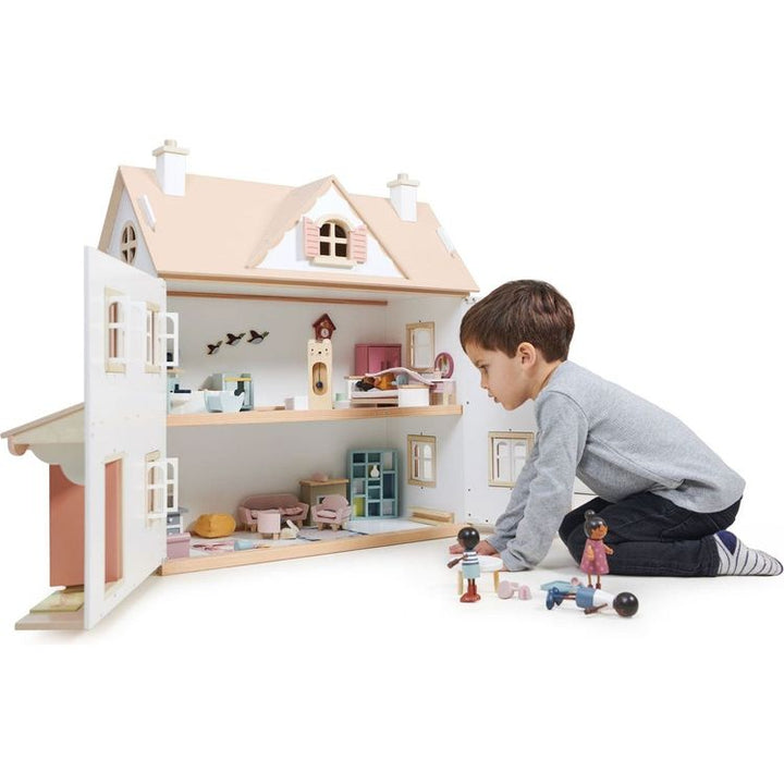 Welcome to our exotic Humming Bird House! A colonial style home with a veranda on either side of the front door, which is decorated with an abundance of flora! Can you spot the little hummingbird? Every window has opening and shutting shutters and window frames, and there is even a little window in the top gable. Large