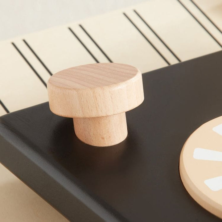 Your little landscaper will love our Lawn Enforcer!  They can release the gas cap and fill with pretend gas, then pull the ripcord to start the pretend engine.  Turning knobs and chunky wheels add to the charm of this fun mower.  The front wheel clackers make sounds when pushed while mowing the carpet in the playroom,