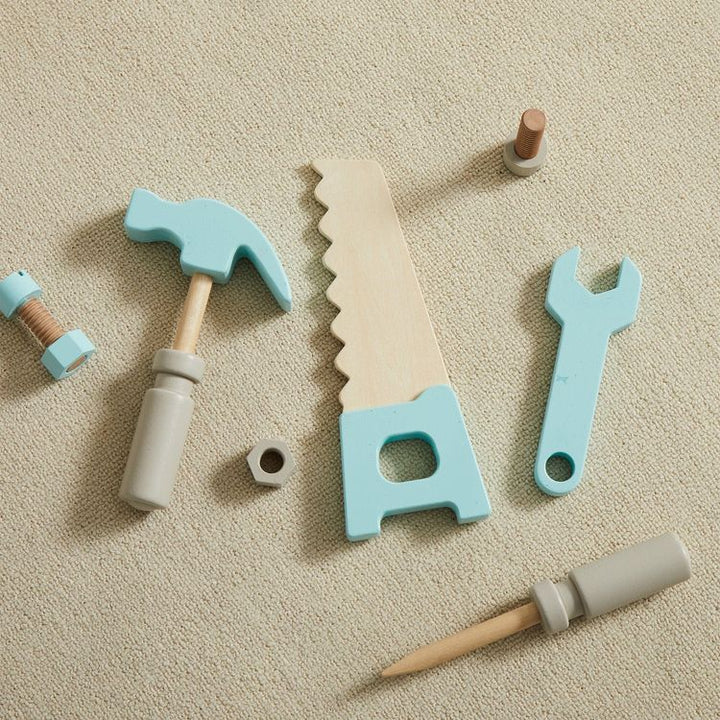 Building stuff is hard work. But it just got easier with our Little Builder Workbench. Our workbench comes with a pretend hammer, wrench, pliers, hand saw, screwdriver, built in circular saw, built in vise, removable bin, and lots of screws and nails. Kids will be itching to get to work. Ages 3+ Material: Plywood Ca