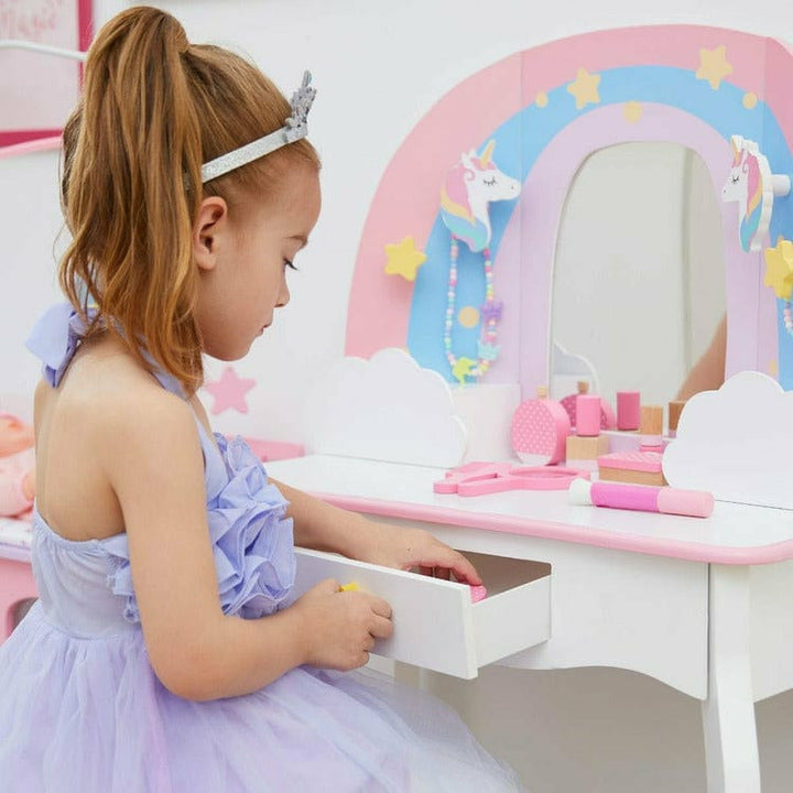 Little Dreamer Rainbow Unicorn Vanity Table and Stool- White