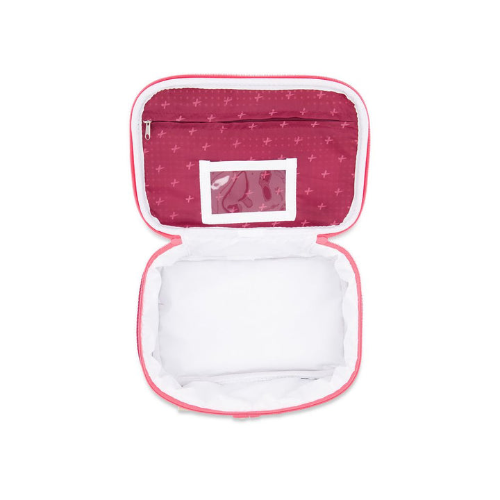 The insulated lunch tote keeps food hot or cold and is easy to carry with you to school. Insulated to keep food hot or cold Easy to carry handle Name tag Buckle to clip lunchbox onto your bag Fits most containers and bento boxes. Fits into all of our backpacks except the little miss Size: 10" W 7" H X 3.5" D + Contents