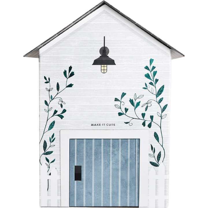 We are cute experts – with a specialty in playtime! Step into the charm of New England with our Cottage Playhouse, reminiscent of idyllic cottages adorned with white picket fences. Its exterior features a soft gray hue, blue shutters, and a welcoming front door. Complete with a shingled roof and cute accents like a han