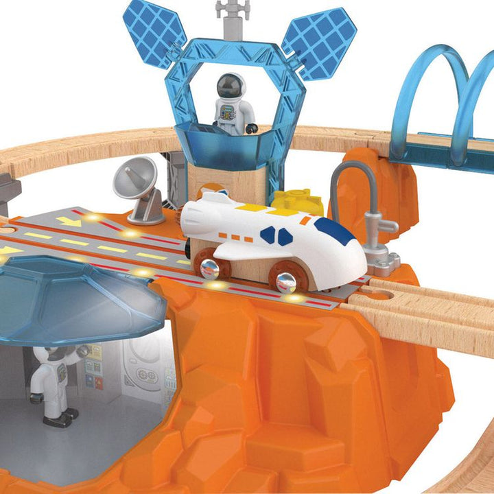 Blast off and join the interstellar fun with our Mars Exploration playset. This set merges railway and space exploration and features astronaut figurines, underground lab and other accessories for role play. With glow-in-the-dark stickers to customise their tracks, this set promotes problem-solving skills, creativity,