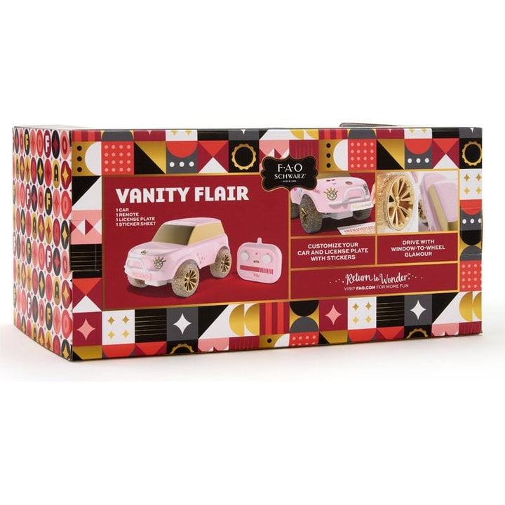 Cruise in style with the FAO Schwarz® Melrose The SUV Remote Control Car, designed to bring a touch of glamour to playtime. This chic, remote-controlled SUV is not just about speed; it's about making a statement with window-to-wheel glitter and gold finishes that sparkle as it moves. Kids can personalize their ride usi