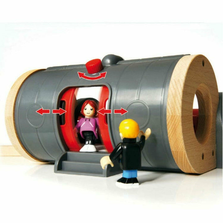 Don't miss your train as it pulls into the Brio Metro Station. It's a classic wooden train set with a technology twist. The train engine has battery powered lights and sounds, the faster it's pushed the more light and train sounds it will make. Crafted with incredible detail, this set will bring children into a play wo