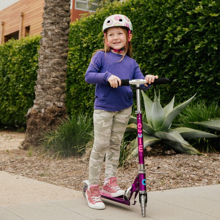 Go anywhere on the Micro Sprite! Our lightest 2-wheeled Micro scooter for ages 6 to teen, the Sprite weighs just 5.9 lbs and folds for easy portability. It’s our highest rated 2-wheel Micro scooter for a reason! This upgraded Sprite features motion-activated light-up LED wheels on the front and back. Perfect for school