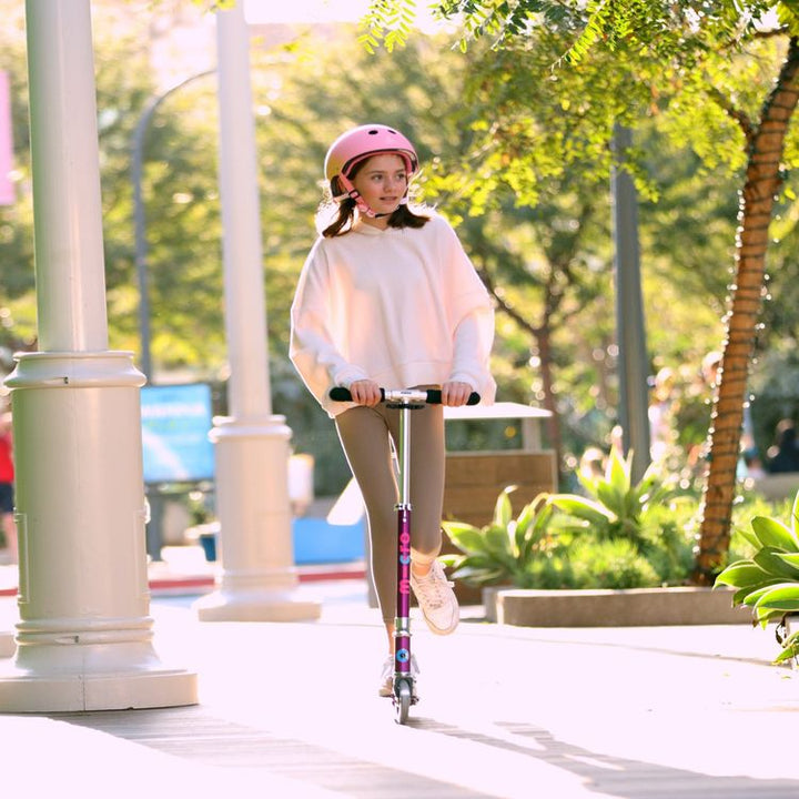 Go anywhere on the Micro Sprite! Our lightest 2-wheeled Micro scooter for ages 6 to teen, the Sprite weighs just 5.9 lbs and folds for easy portability. It’s our highest rated 2-wheel Micro scooter for a reason! This upgraded Sprite features motion-activated light-up LED wheels on the front and back. Perfect for school