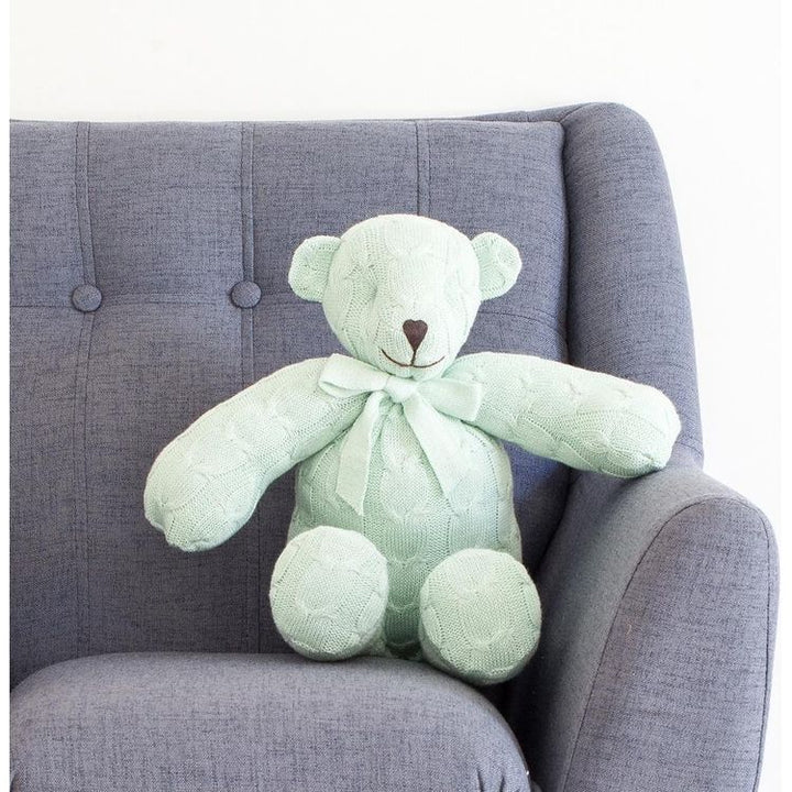 Mint Cable Knit Plush Teddy Bear