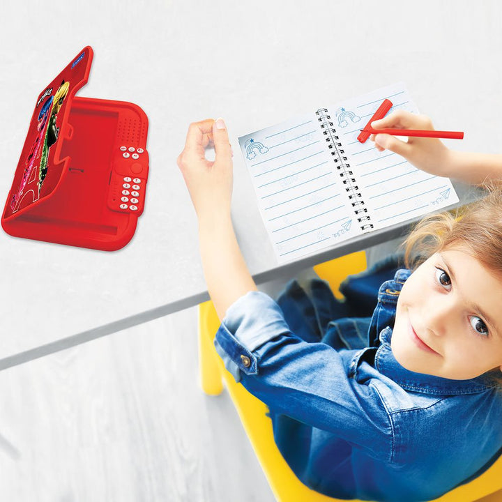 A Miraculous secret safe notebook to write down all your secrets and keep them safe. Create a 4-digit password to unlock the notebook. Fun features: voice recorder, voice changer. Personalise your notebook. A pen included, possibility to change the notebook when you have filled all the pages with your secrets! Dimensio