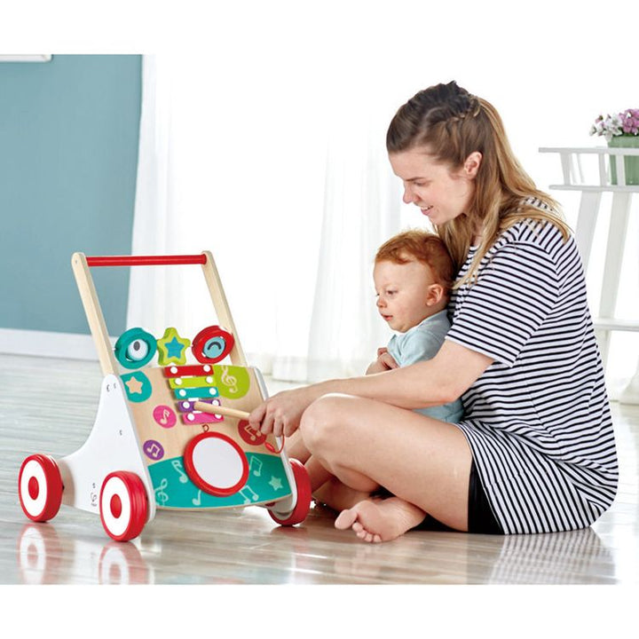 Help your little ones take their first steps in style with this wonderful musical walker. See their faces light up as they start to walk and hear pretty music playing as they go! With adjustable speeds, the walker also features a drum, xylophone and three spinning blocks for additional musical play. Plays music as you