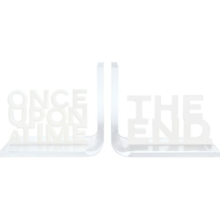Story time begins and ends with these "ONCE UPON A TIME" & "THE END" bookends. Stylish and clever on any bookshelf. Material Content: Acrylic Care/Wash Instructions: Wipe Down PLEASE NOTE: this item does not qualify for free shipping. Due to item size/weight there is a shipping fee associated with this item.Â