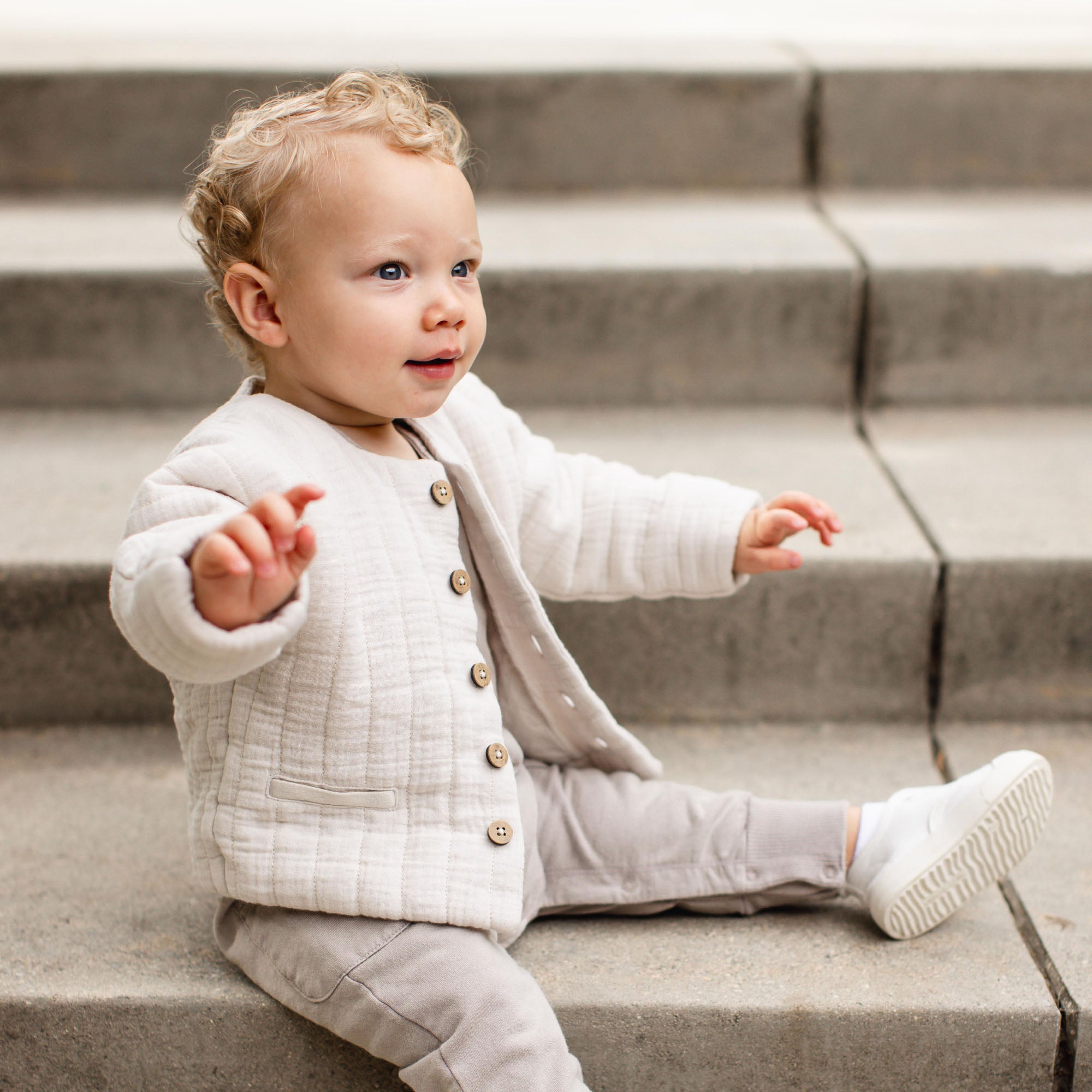 Our much loved organic cotton quilted jacket is back. this time without a hood. It’s the easiest layering piece to every outfit.