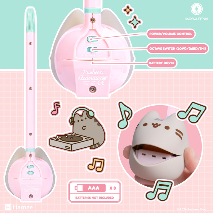 One of Japan’s Best-Selling Musical toys! This super cute Otamatone features an exclusive Pusheen the Cat design! FUN & EASY TO PLAY ♡ Touch or slide your fingers along the stem to vary the pitch and squeeze the cheeks for vibrato. Play in a low, medium, or high pitch – get together with friends and create a harmon