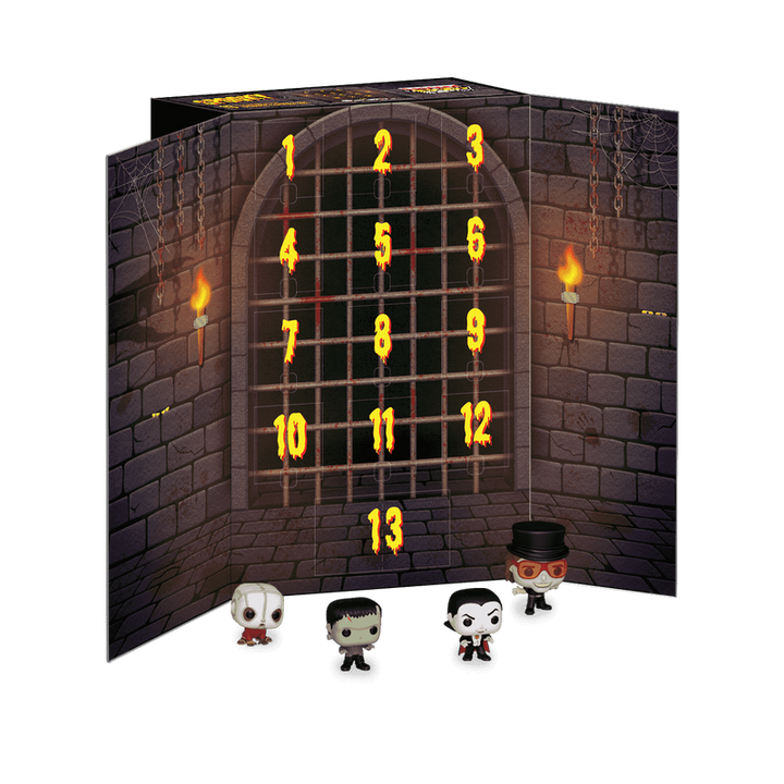 Count down to your favorite frightful holiday—or any special occasion—with the Universal Spooky 13 Day Countdown Calendar! Open the tiny doors to reveal 13 unique Pocket POP! collectibles featuring iconic creatures and villains like Frankenstein, Pluto, The Grabber, and Dracula. Expand your horror lineup by making this