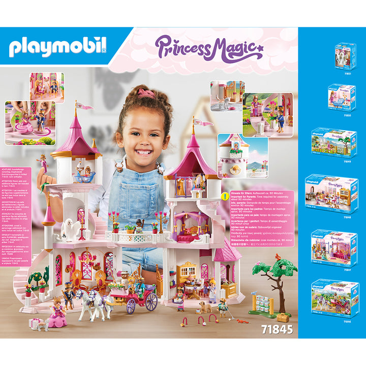 Welcome to the Grand Princess Castle with Royal Couple by PLAYMOBIL! Here, the royal couple resides with their cute Persian cat. Furnished with enchanting spiral staircases and pointed towers, the castle invites you to admire the majestic throne room, where two shining thrones and an impressive chandelier await the roy