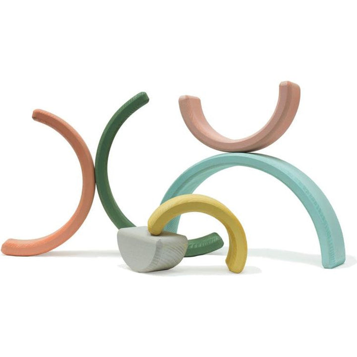 Toddlers will love to stack, nest or make different shapes with our Rainbow Nesting Blocks. Our nester comes with 6 arched pieces of stained wood, and will be a keepsake for sure. Materials: Wood and non-toxic stain Ages: 10 months & up Dimensions: 14 x 7.75 x 1.5 inches PLEASE NOTE: There is a shipping fee associ