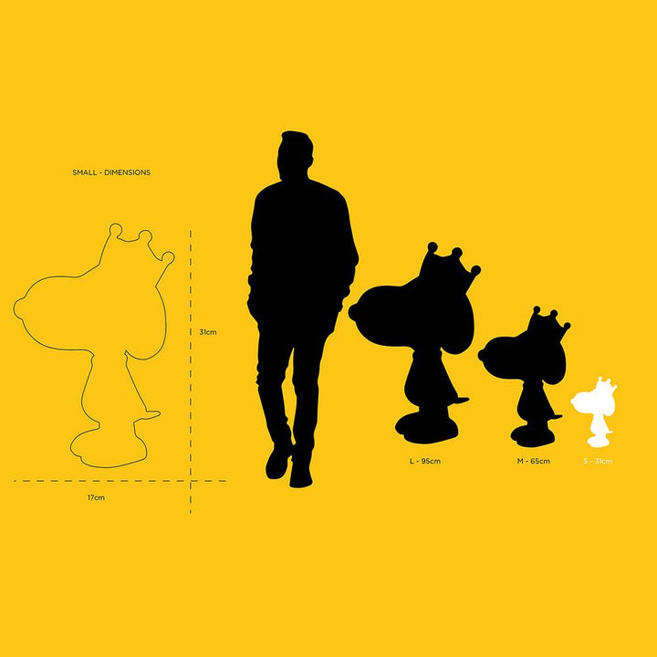 Add a touch of elegance to your collection with this exceptional figurine of Snoopy. This resin piece features the famous crowned beagle, celebrating his festive and joyful spirit. The figurine, available in black and gold, combines sophistication with playful charm, making it a true work of art. The detailed design