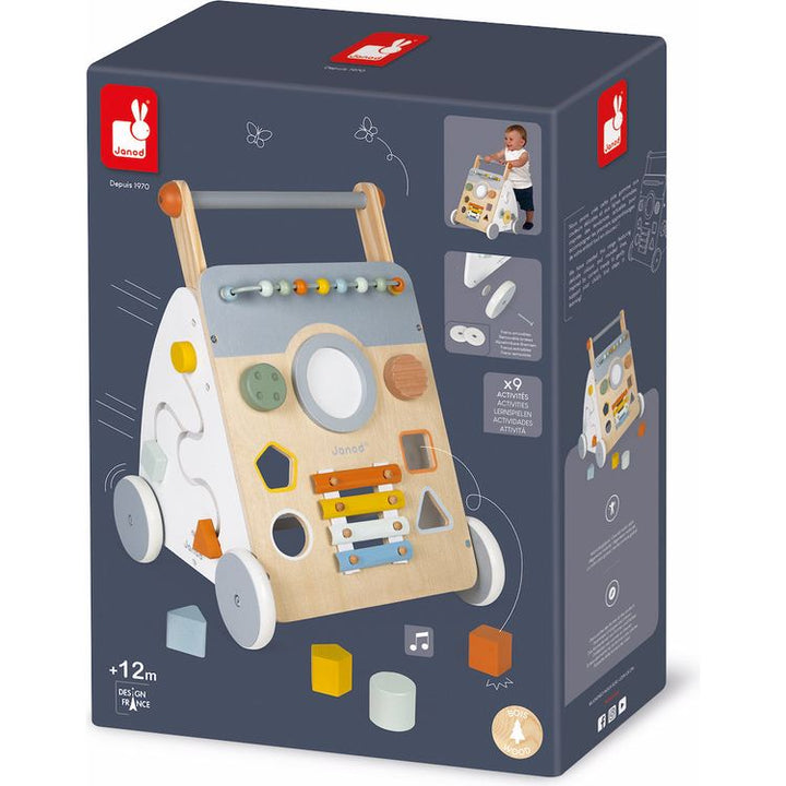 This attractive multi-activity walker is particularly suitable for learning to walk. It will safely accompany children 12 months and up: its invisible and removable brake can lock the wheels and release them gradually so your child can master the speed of the walker while learning. In addition to walking, your child wi