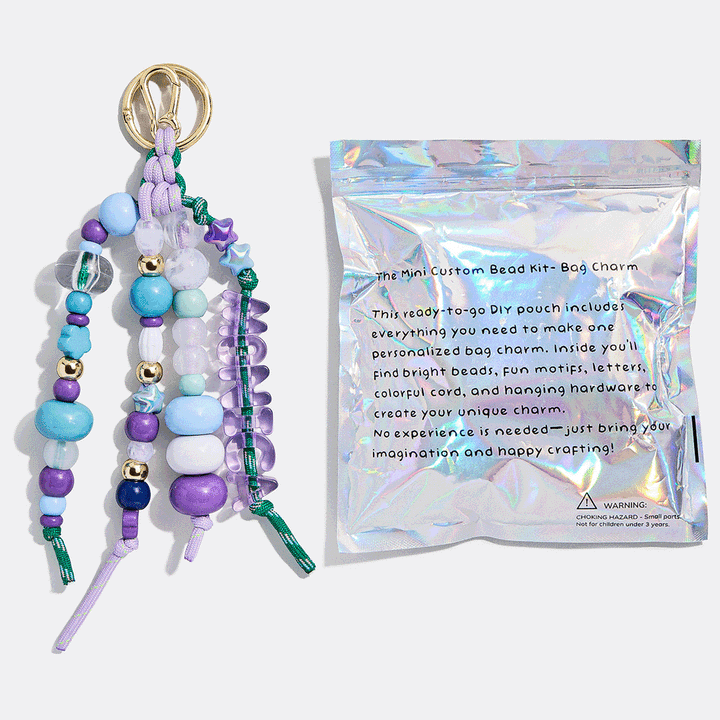 Our Ultimate Bead Kit, turned mini! This ready-to-go DIY bead kit includes everything you need to make one personalized bag charm in a resealable foil pouch. No experience is needed — just bring your imagination and happy crafting! What's Inside: 40+ tonal multi-sized beads 3 smiley face beads 1 complete alphabet (A-Z)