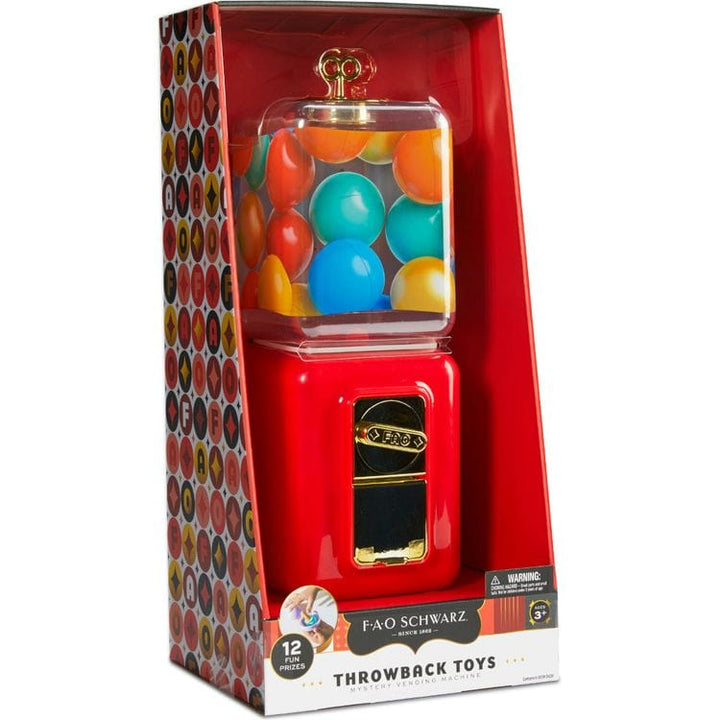 Step back in time with the F.A.O. Schwarz® Throwback Toys Mystery Vending Machine. This interactive toy is all about discovery and surprise – simply turn the knob to claim a capsule and uncover one of 12 mystery toys hidden within. The fun doesn't stop there – refill the capsules and repeat for unlimited play. This ret