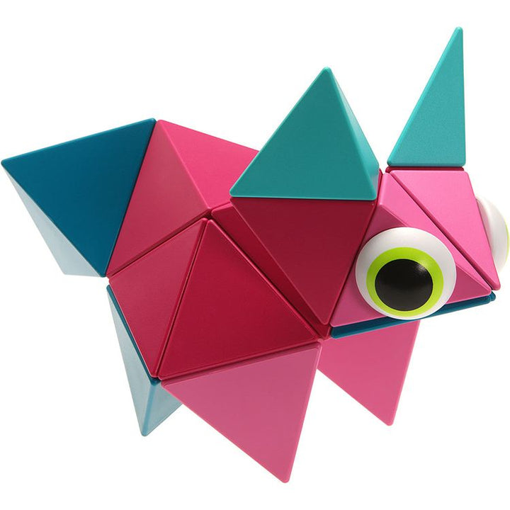 Vivid colors of the Flamingo abound in this 24 piece set includes 4 octahedrons, 8 tetrahedrons, 8 half-tetrahedrons, 4 eyes (in total 24 pieces) + Leaflet. The 24-Piece Set is a medium building set that allows for more characters and objects. Ages 3Y+ Materials: ABS PP magnetite Care instructions: Wipe with damp cloth