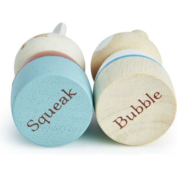 Ahoy there! A traditional solid wood sailing boat evocative of summer time seascapes. Best friends Bubble and Squeak are on top deck, enjoying the views. With 2 fabric sails and some stylish bunting, these 2 friends have the coolest boat in the harbor. The boat cannot be put in water. PRETEND PLAY Happy birthday to you
